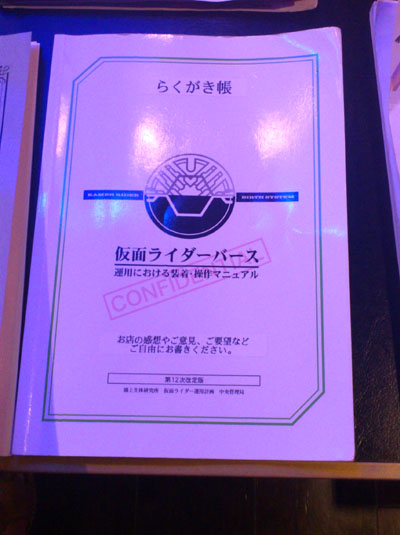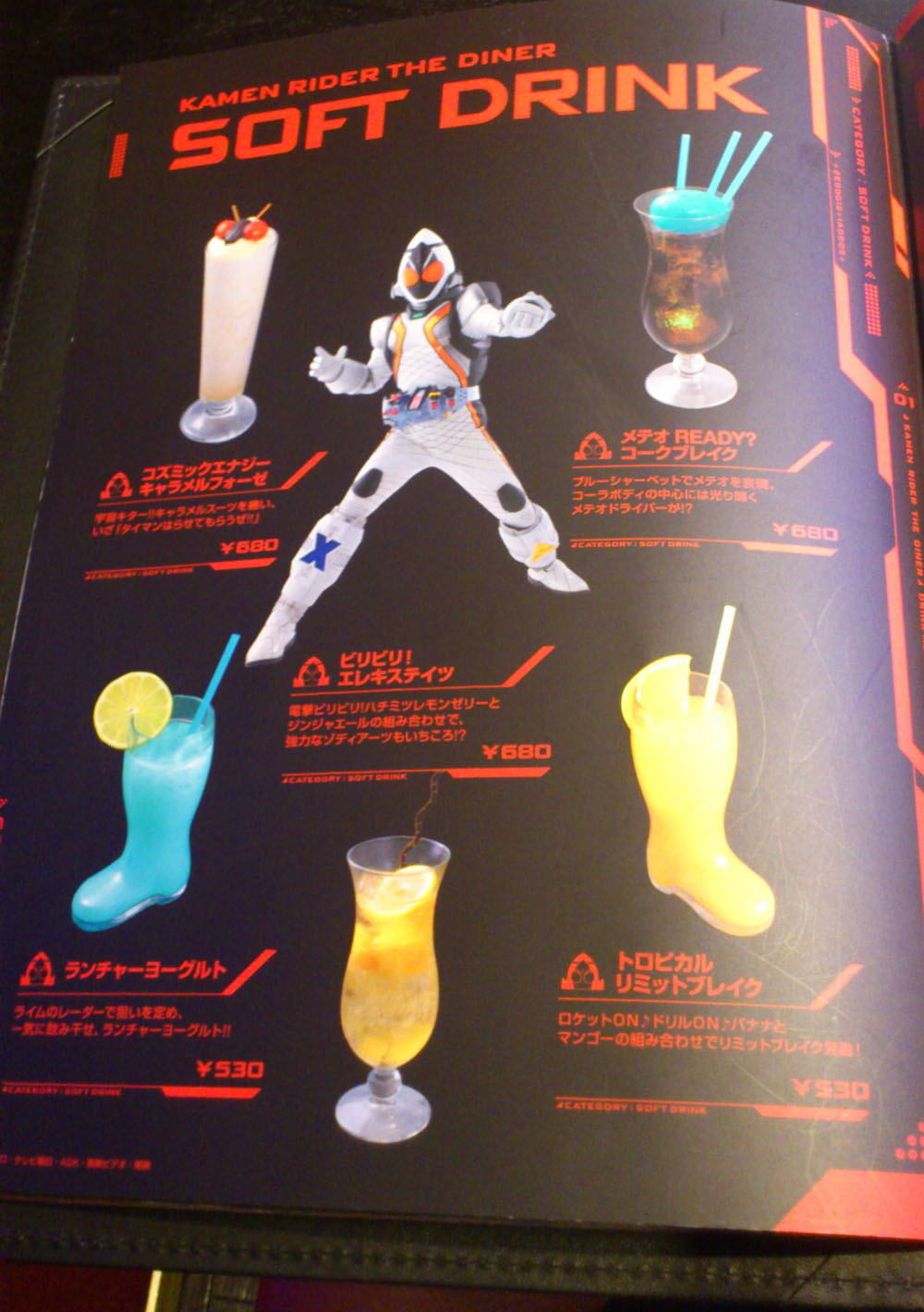 現充跟阿宅都會擠到台場去,光想像就超萎的!!所以我這天的行程就是避開人潮去池袋的賴打餐廳! 但是特攝同萌的大學同學A君假日要打工,結果Boss聽到了就說:"那我陪妳去吧!" な、なんだってー! (AA 算了Boss好歹也是個看過昭和賴打的老宅...也算safe啦,所以8月11日晚上就跑去了賴打餐廳 Boss看一眼地圖「カラオケパセラ...?好懷念的地方。」 原來boss以前就是混池袋的,池袋西口阿宅。因為每年都要去跑展,上野跟秋葉原跟池袋這種地方都很熟(笑) 他簡單地跟我介紹了一下,カラオケパセラ據說是ACG歌曲最齊全的卡拉OK...甚至還有專用PV之類的呢。 總之到了西池袋順利找到了カラオケパセラ,在大樓的4F 因為沒有預約稍微等了十幾分鐘左右,下次要來還是先電話預約好了...畢竟不知道這家啥時會倒(喂 進門後小姐請我們先在樓下候位,パセラ內有wifi也有可以用。 每個人來都要拍一下的門口 上了4F看到紅黑的修卡基地店內設計當然是很開心,總之就先來點餐啦!! 我把整本MENU都拍了一遍(喂) 當然,我一點都不期待這種噱頭店的餐點能吃,還好下午先去吃麵屋武藏吃得很飽。 就隨便點自己想吃的,身為4Z腦殘粉的太太我先朝甜點下手, METEOR可樂!!! 那三根吸管大概是模仿METEOR頭上的那三根吧.. 特寫圖一張 菜單長這樣 上面那顆漂浮的蘇打味冰塊可以咬來吃,底下還有個會發光的冰塊類的裝飾品 上菜時店員還會開開本篇的捏他玩笑,要說專業也頗專業啦... FOURZE聖代!!! 菜單長這樣 造型真的好可愛喔!!上菜的時候店員還會要求一起做出宇宙キター的POSE&喊出台詞才要讓我吃XDDDDD 剛好隔壁桌的太太也點了同樣的聖代,所以就變成4個人(兩個店員兩個顧客)要一起耍笨! 哇好羞恥PLAY!!不行!!太太我恥力簡直就是隨年齡增加直線下降,好丟臉啊啊啊 不過隔壁桌的太太很開心地照做了,她手上還有4Z的發光扇子, 好像是吃到變白金會員(?!),常客集章會送的獎品?總之借來拍了一下。 說真的我還滿想要的, 好閃亮的扇子(笑 但還是好佩服她喔!!!這種噱頭餐廳真的好貴啊!!!餐點又好微妙!! 例如說這個4Z聖代味道實在有夠讓人唉桑,簡直就是女僕咖啡店的騙錢聖代,好難吃的說(爆) 不過這種餐廳本來就是吃氣氛的,店內氣氛不錯,還有滿多爸媽帶小孩來。 店內音響播放著歷代賴打的主題歌插入曲,牆上的電視還放著OP的畫面(沒聲音) 飲料甜點先來了,但不知道為什麼肉系列上菜有夠久的,就跟boss在那邊閒聊 Boss看著牆上的電視,很感嘆地說:「妳知道為什麼這OP有畫面沒聲音嗎?」 我:「欸?為什麼啊?」 ...對喔,音響也是播放著賴打的主題歌,為什麼不乾脆剪輯個完整版的OP, 直接在電視上搭配著畫面播放就好了?為什麼要把畫面跟歌曲分開,這點我也覺得很疑惑... Boss:「因為阿宅們只要看到畫面配著OP歌曲就會HIGH翻天, 一定會有人跟著唱起來!會破壞店內氣氛!」 哈哈哈哈哈哈害我大爆笑,這樣說起來還真的很危險XDDDDDD 好吧我大概也會在心裡偷偷唱,嗯... 外面還有專門的販售區,不過都好貴(廢話)還不如去ヨドバシカメラ買... 而且奇異的是都沒有BANDAI的玩具...嗯,大概是沒合作關係吧。 因為主菜一直都沒來只好開口跟他催,終於上菜了之後 我點了BLADE的肉排。 Boss則是點了kuuga的坐騎ゴウラム的漢堡排... 肉的味道很普通水準,ゴウラム的腳好不氣味wwww 這一餐吃了日幣3K多.......總之就是看熱鬧的,來朝聖!店內基本上還是以王's比較多的感覺, 到處都有映アン閃照啊(秀君你好煩wwww),雜誌區還放了一本Birth的使用手冊當塗鴉本!好可愛喔!! 不過身為一個4z腦殘粉有點寂寞的說嗚嗚嗚,只能拍拍腰帶(眼神死 還有墨水匣系列(笑) 我是周六晚上過去,大概是有特別殺必死吧,店員說當天有額外贈送杯墊, 平常是有點該樣餐點才送的杯墊,這次通通送!因此拿到了各種杯墊!! (有點餐的也送,所以額外重複拿到空我跟4z跟劍w) 當然我也去坐了大首領之椅,也拍了實物大的空我的機車TRCS! 高中時代超迷空我的!我還帶VCD去社團放咧(喂)...睽違了N年能再次迷上賴打真是太好了XD 這家店雖然滿是噱頭又貴餐點又不怎樣,但還是希望他能夠經營久一點, 留給賴打迷一個朝聖的地方w 下篇是4z夏季劇場版的感想w PR CommentsComment Form |