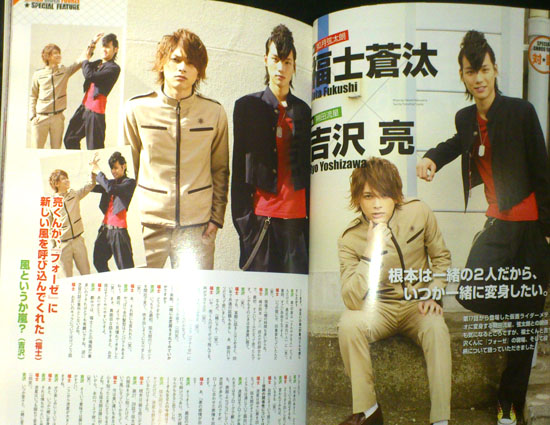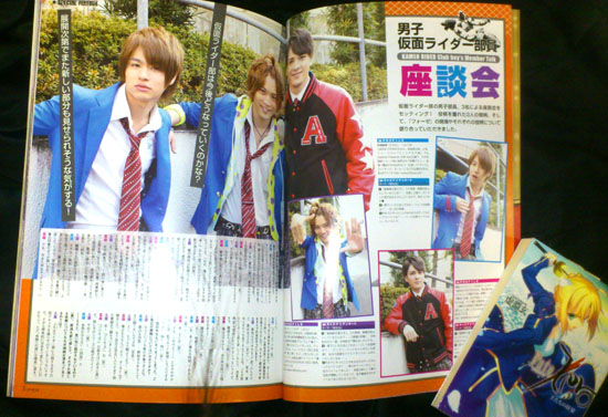 不過想湊停車費,就隨便買了本已經看到爛掉但換了新插畫的神作小說(毆) 只是醇酒堂的特攝櫃還真的是有夠寂寞的,西門町的雜誌瘋比較豪華 想說來都來了就順便訂個雜誌算了,太太我都這把年紀了... 要訂這種封面都是池男小雞的雜誌需要鼓起一定的勇氣啊啊啊!!! 報上了isbn,沒想到店員小哥說有一本現貨!太開心了..... 不過店員小哥找一找,又說「啊不好意思還沒拆箱耶(;^ω^)」 欸欸算了(;´∀`),雜誌出版日寫4/3,本來就沒期望今天就能買到... 只是碰個運氣....想說周日再來拿好了.............. 到樓上去吃個飯,店員小哥又打來了!!居然找到了ヾ(*´∀`*)ノ 店員小哥nice!!!!(伊達桑調) 今天就拿到了!!!CPZ!!!!!(旦那:這什麼意味不明的書名的雜誌..........) 老實說我是衝著封面的賢吾(應該說是龍輝君)太可愛惹才買的。 底下是腦殘感想www 封底是Ankh的涼君,跟旦那說這是Ankh的時候他噴茶了。 他指著拉頁說,「哇賽~這比隔壁那個妹還要正的感覺」害我當場爆笑。 拉頁是弦ちゃん的後宮,左有賢吾又有流星,一整個人生勝組的FU(笑) 跨頁的亮君笑得超燦爛的wwww(不過沒拍好啊哈哈|||| 雙騎士對談,喔喔喔怎麼說咧這兩個都很可愛!照片看起來弦ちゃん的腰超細的(垂涎 不過旦那說比起お亮他覺得中村優一比較帥..........嗯.......可是我比較喜歡流星的造型耶^q^ 雙騎士對談的氣氛很好,標題還提到希望有哪天一起變身的一天。 但弦賢派的我總覺得有種老公跟小三外遇的感覺(笑)正妻被擠到後頁去啦~ 對談蒼汰君提到31&32話會是「fourze中絕對讓人忘不了的話數」,到底是會發生什麼事情啦好緊張喔orz 後來還會有京都篇!!是畢業旅行嗎?好在意喔^q^ 追番如此痛苦哈哈哈 (居然用saber孃來壓書啊我^q^) 後面騎士社三人男對談,演員們聊些學校生活神馬的,好可愛喔(´∀`) 高橋君感覺為了演戲犧牲了學生的青春啊(遠目)事業心很重的感覺....... 對談最後還烙了一句「今後會有認真跟流星尬上的場面!敬請期待」 被大慘事學長吐嘈說這樣的預告太美味了好狡猾!!笑死我了www 糟糕我超想看的啦!!!正妻跟小三對決(就說不是了 隔壁還有鬼島君...應該說是清嵐君的訪談,是個很認真的孩子 大家都希望蟹君come back啊蟹君 涼君的訪談好美好妖...隔壁有個正常人小哥.............. 媽媽仔細一看居然是蒼汰君,哇真是個普通人!(過份 隨便拍個一張稍微比較帥的一格 旦那:該不會是因為演員長得太普通才要梳成那種飛機頭吧! 哎唷不會啦蒼汰君也很池男的好不好www起碼身高夠高+手長腳長 工作的地方也有特攝同好的小哥說他每次看4z都一直在看弦ちゃん的腰(爆笑) 買雜誌的好處是,網路上的情報雖然快 但通常只會找自己想看的部分看而已,雜誌的話是會幫你把情報匯集成一本,讀完本來沒興趣的東西都會覺得好像很有趣而想看看w 現在超期待非公式戰隊秋葉原連者的^q^ 人設是虎兔的監督哩!!真神秘.... 其他內容有時間再好好看好了 雖然我似乎是正港2次元腦,只喜歡角色,不太萌得到真人的 弦賢派的我還是比較喜歡4z的教科書啦啊哈哈哈(自重啊你 PR CommentsComment Form |